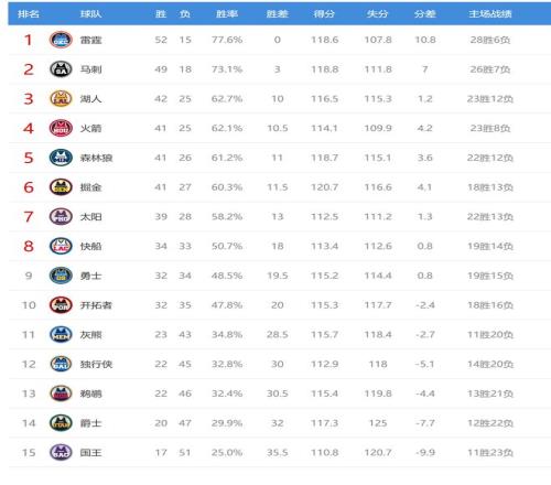 今日比赛后湖人、火箭排名互换,掘金、森林狼排名互换,其他西部球队排名不变。