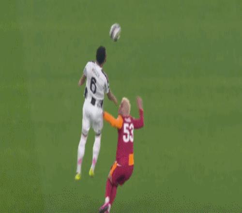 的慢镜回放显示,凯利是在跃起争顶的时候被冲过来的伊尔马兹推了一下,才在落地的时候失去平衡踩到了后者。关键主裁判还是观看了VAR视频回放,然后竟然还选择取消黄牌直接出示红牌。换句话说在他的认知里,凯利属于是严重的故意犯规,事后会遭到更为严厉的追加处罚。